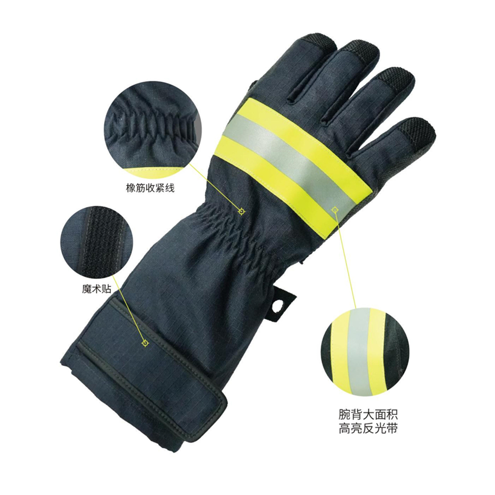 反光警示:拳峰处大面积反光条警示,增强视环境恶劣条件下警示作用(易穿脱:腕部阻燃防滑松紧带+魔术贴设计,易于穿脱