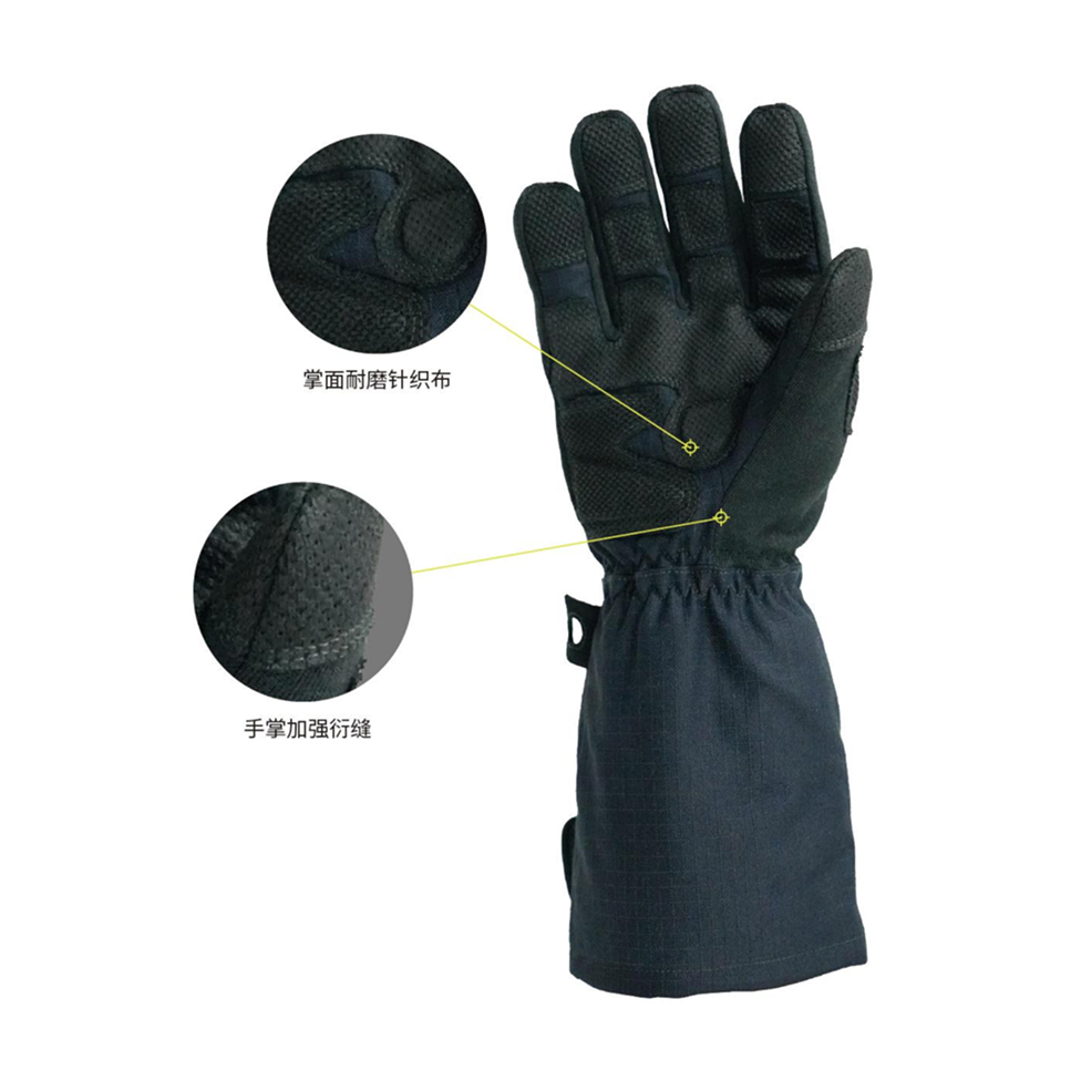 反光警示:拳峰处大面积反光条警示,增强视环境恶劣条件下警示作用(易穿脱:腕部阻燃防滑松紧带+魔术贴设计,易于穿脱